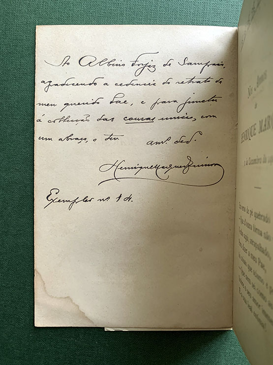 NOS ANNOS DE HENRIQUE MARQUES — (1904) — Exemplar n.º 14 — com dedicatória a ALBINO FORJAZ DE SAMPAIO » henrique-marques-albino-forjaz-1